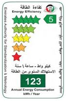 ESMA于2011年4月13日颁布实施国家能源效率和保护计划(EESL)。依据该计划,ESMA自2011年开始,先后将空调、洗衣机、冰箱、灯具纳入EESL的管控范围。所有在管控范围内的产品,都必须通过产品测试以注册EESL,完成EESL注册并加贴能效标签(如下图),方可进入阿联酋市场。